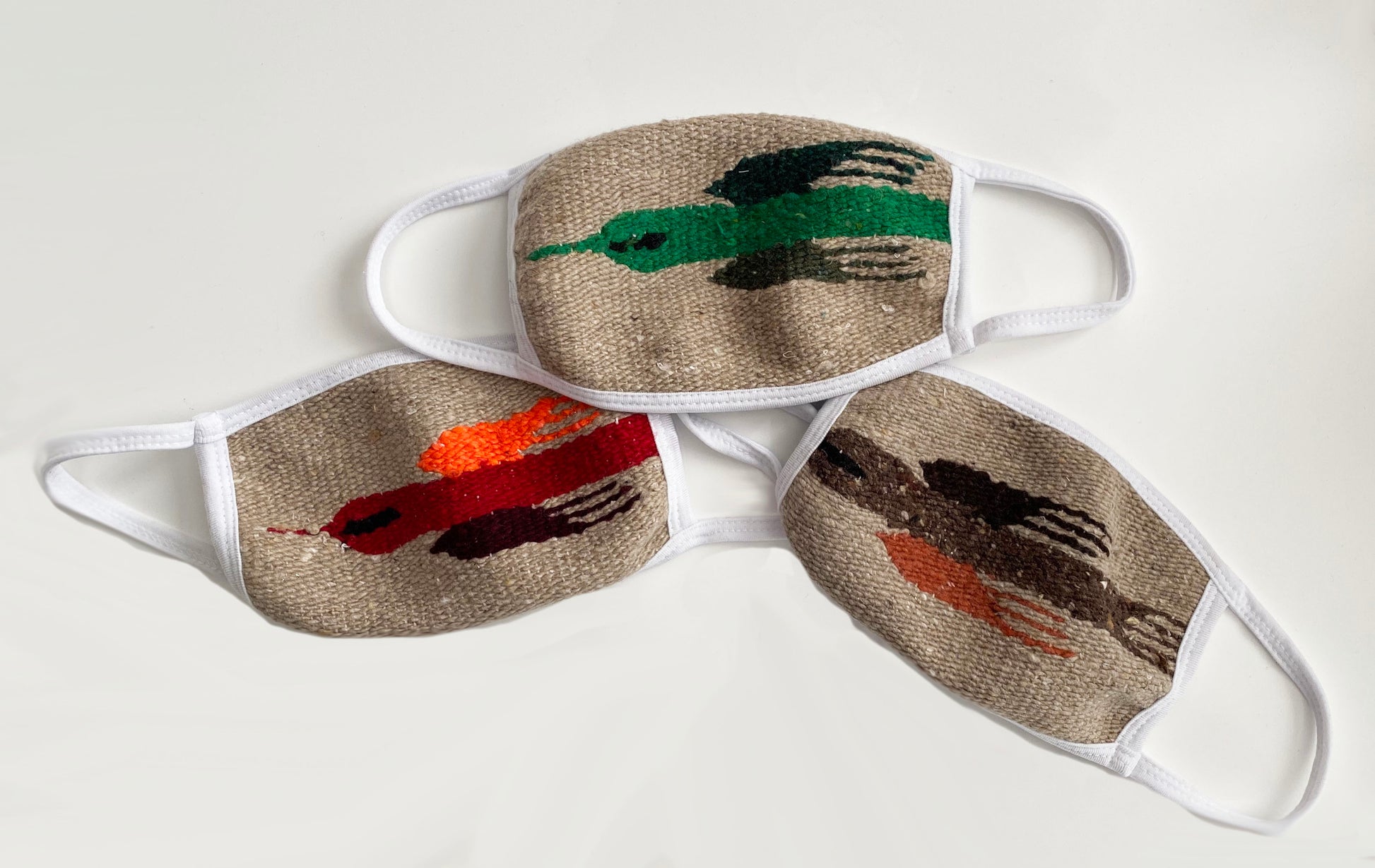 To help support our community, our weavers and those that work for us we've started making masks from our blanket textiles. Our masks are eco friendly and are made from surplus clean fabrics. Our solid thunderbird blankets are woven from recycled materials on wooden looms. Each blanket is processed through a high heat, high pressure machine to adhere a fusing fabric, we then add a cotton jersey liner and ear loops. (These masks are not medical grade and do Not have a filter.) For each individual mask purchased we are donating to frontline & essential workers, organizations and people that are in need of masks. Proceeds are going towards paying our employees, weavers and supporting grass roots non profits that are helping feed & support children and families during this time.