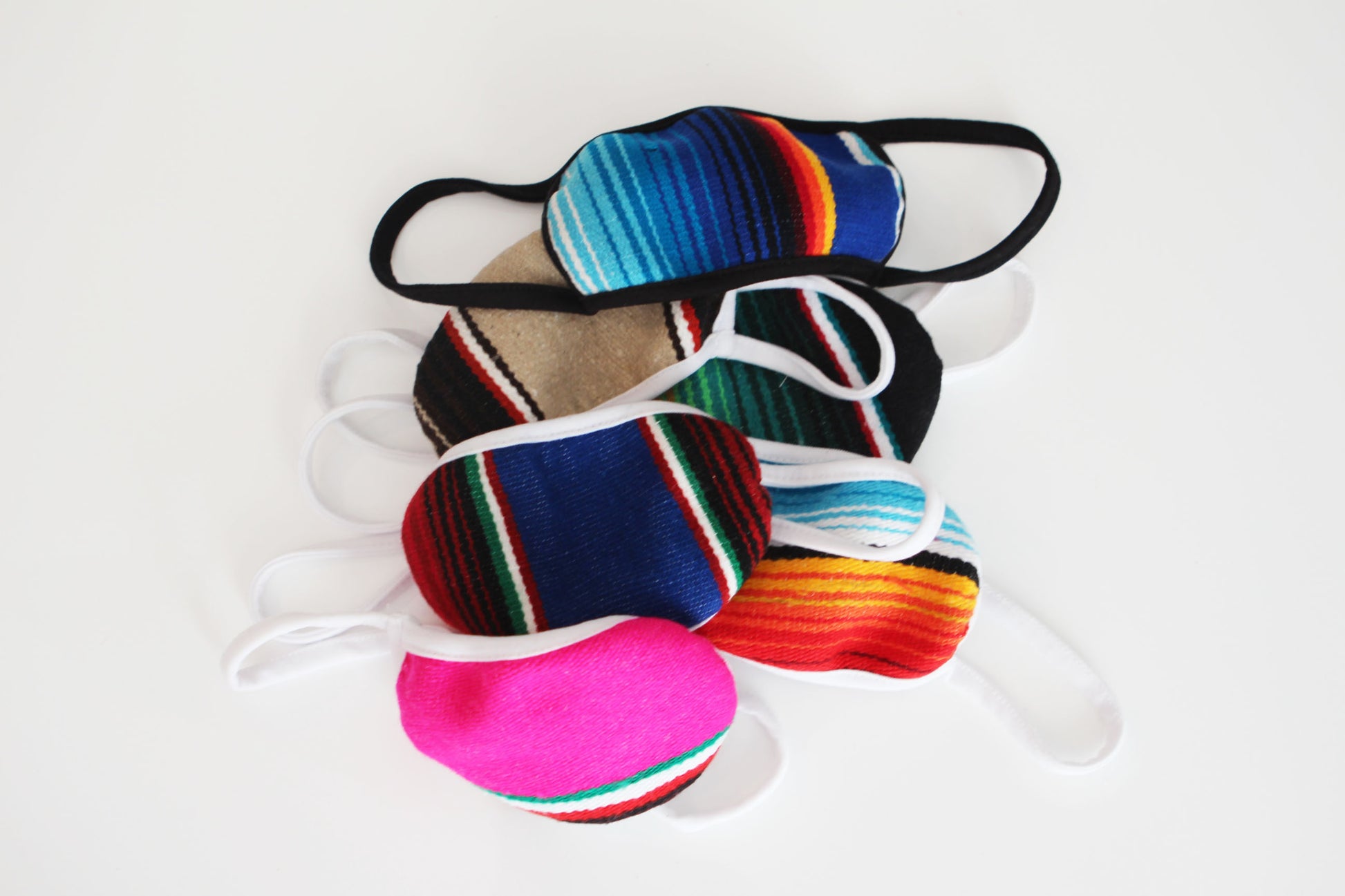 To help support our community, our weavers and those that work for us we've started making masks from our blanket textiles. Our masks are eco friendly and are made from surplus clean fabrics. Our serape blankets are woven from recycled threads and each blanket is processed through a high heat, high pressure machine to adhere a fusing fabric, we then add a cotton jersey liner and ear loops. (These masks are not medical grade and do Not have a filter.) For each individual mask purchased we are donating to frontline & essential workers, organizations and people that are in need of masks. Proceeds are going towards paying our employees, weavers and supporting grass roots non profits that are helping feed & support children and families during this time.