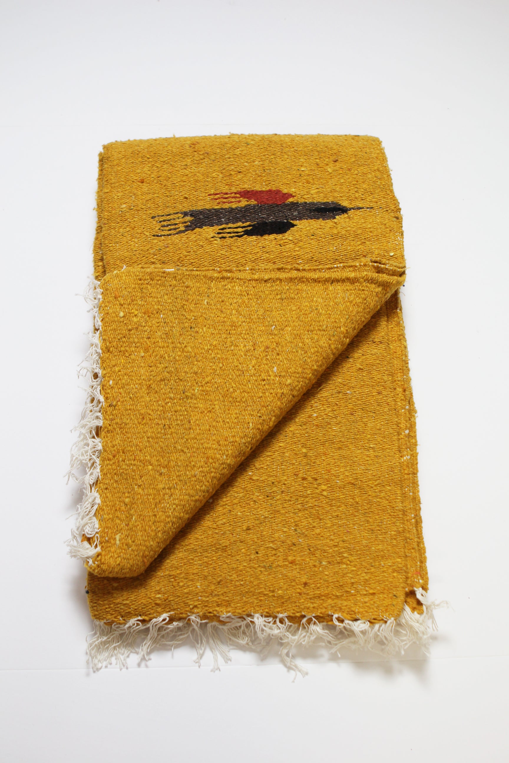 These beautiful one of a kind Thunderbird design blankets are hand woven by artisan weavers in Mexico. This is almost a lost art weaved by hand on wooden looms. It is a skill that has been passed down for generations, with each family adding their own signature style of design within each weave. It's perfecto for your casita, a day at the beach or picnic. You can even it pair it with one of our coordinating dog pillow beds! Enjoy these beautiful pieces of art!