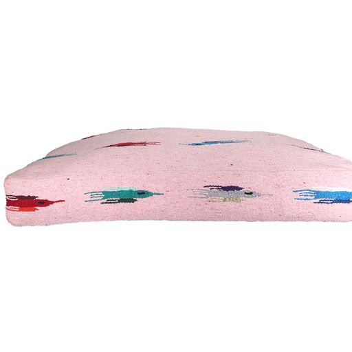 Our Thunderbird floor pillows compliment and beautify any home space and are excellent for humans and pets to lounge on! Sparrows are the inspiration for this traditional design. Upcycled clothes are converted into weaving yarn creating a unique & customized color that varies batch to batch. Each blanket is hand spindled and then hand woven by indigenous artisans in Mexico on old wooden looms. This is almost a lost art and is a skill that has been passed down for generations, with each family adding their own signature style of design within the weave. Each bed is truly unique and magical, not to mention eco friendly! Enjoy!