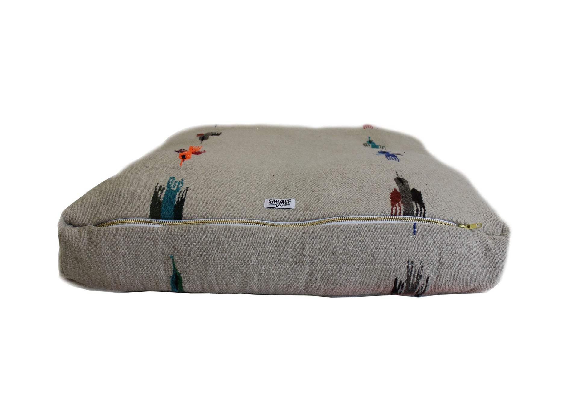 Our epic Thunderbird floor pillows are absolutely perfecto! They compliment and beautify any home space and are excellent for humans and pets to lounge on! Sparrows are the inspiration for this traditional design. Upcycled clothes are converted into weaving yarn creating a unique & customized color that varies batch to batch. Each blanket is hand spindled and then hand woven by artisans in Mexico on old wooden looms. This is almost a lost art and is a skill that has been passed down for generations, with each family adding their own signature style of design within the weave. Each bed is truly unique and magical, not to mention eco friendly! Enjoy!